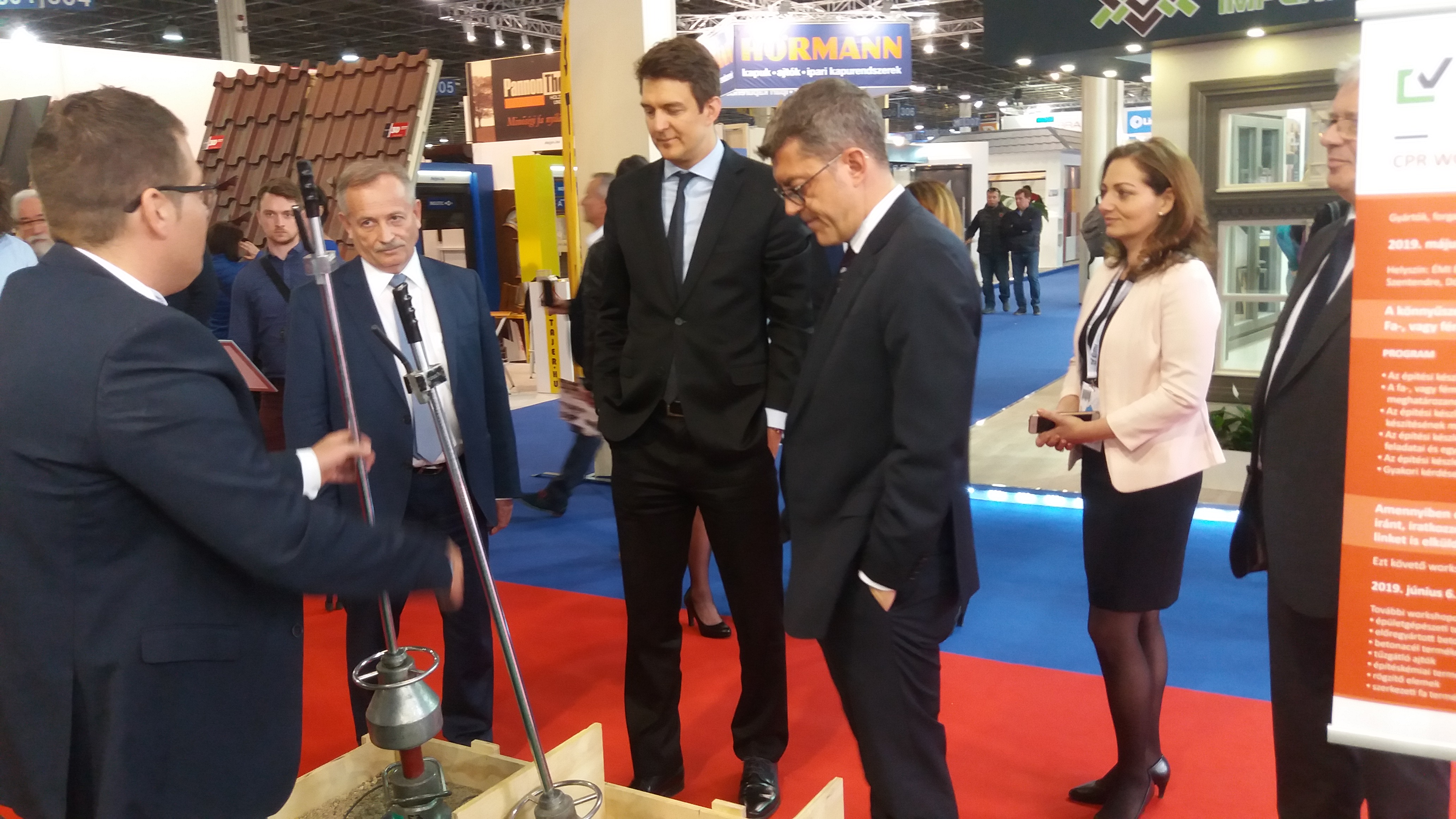 A 38. Construma ünnepélyes megnyitóját követően Dr. György László, az Innovációs és Technológiai Minisztérium gazdaságstratégiáért és szabályozásért felelős államtitkára ellátogatott az ÉMI standjára, Koji László ÉVOSZ elnök, Ganczer Gábor HUNGEXPO vezérigazgató és Dauner Márton ÉMI vezérigazgató társaságában. Megtekintették többek között az ÉMI mobil diagnosztikai laborautójának vizsgálati eszközeit, valamint a Solar Decathlon Europe 2019 versenyző csapatainak makettjeit.