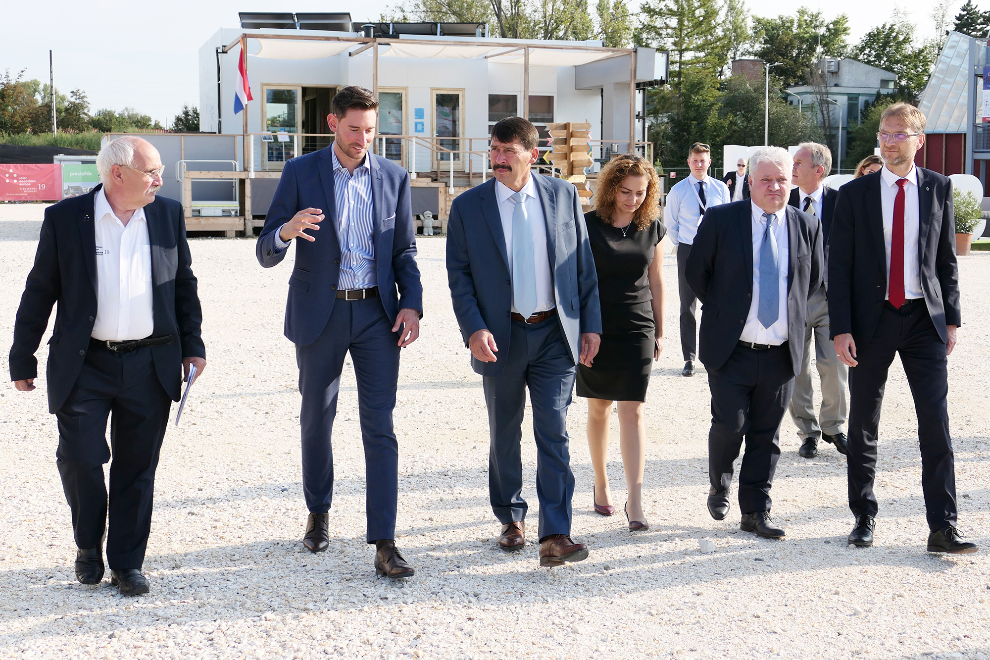 A 10 mintaházat mindössze 14 nap alatt felépítő egyetemista fiatalokat július 12-én, a versenyidőszak megnyitóján videoüzenetben köszöntötte Áder János köztársasági elnök, aki az ÉMI felkérésére elvállalta a nemzetközi verseny fővédnökségét. A klímavédelem és környezettudatosság iránt elkötelezett államfő a meghosszabbított kiállításon szakított időt arra is, hogy személyesen megtekintse a szoláris falut.