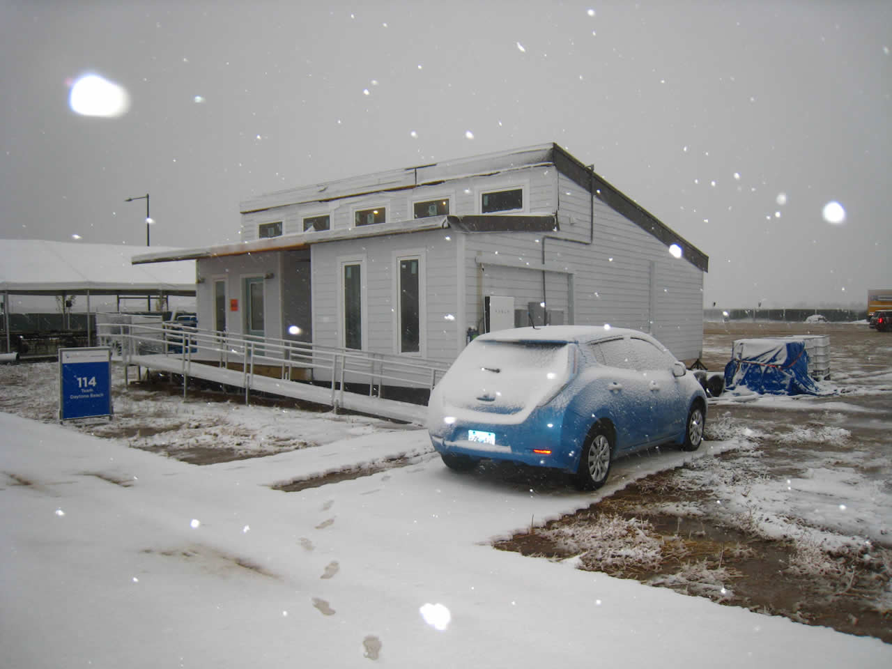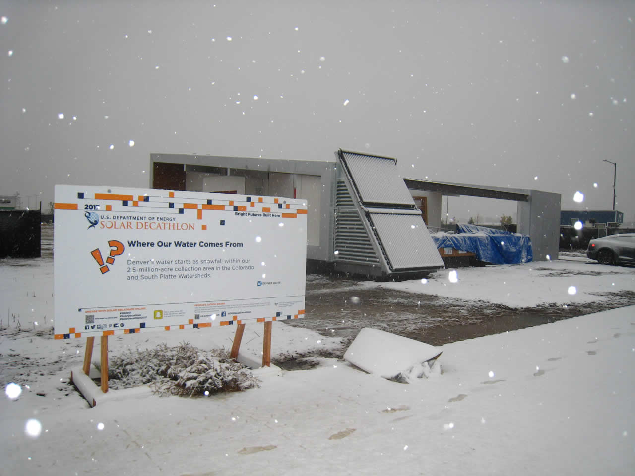 Az időjárás azonban több ponton is kihívások elé állította a denveri Solar Decathlonon induló csapatokat. Legtöbben ugyanis – magunk a verseny szervezői is – kedvezőbb időjárási körülményekre számítottak: sok napsütést, csapadékmentes (vagy minimális esőt hozó) időt vártak, hiszen az év ezen szakaszában itt száraz, napos idő jellemző. Az építési szakasz 12 napjában azonban csak ritkán bújt elő a nap, a napok fele esős volt. A sok csapadék miatt, és a területen közlekedő munkagépek forgolódása nyomában keletkező sár sem váltott ki általános örömujjongást a házak felépítésén fáradozó egyetemi csapatok körében. A szokatlan időjárás október 9-én pedig újabb meglepetést hozott: hó esett Denverben.