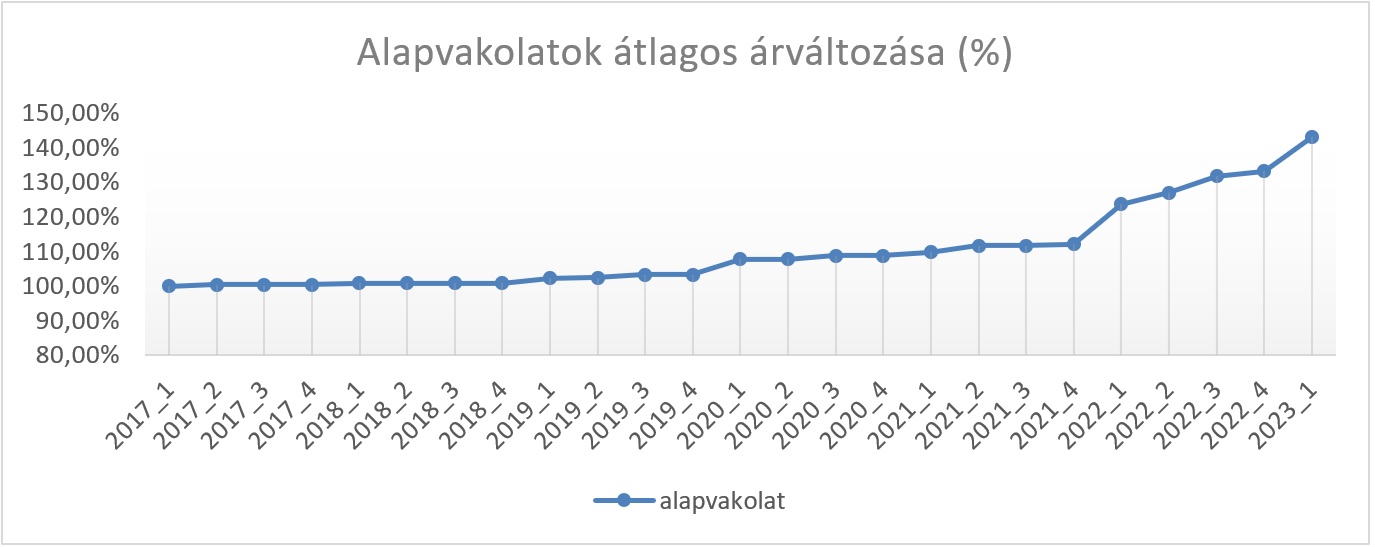 Az ÉMI több mint 6000 termék idősoros árainak szakmai vizsgálatát végezte el, mely során meghatározott kiemelt termékcsoportokat. Az így létrejött termékcsoportok árainak összehasonlíthatóvá tétele után, azok változását vizsgálta és grafikusan ábrázolta. Az adatok bázis értéke 2017 I. negyedéve, mely megfelel a nemzetközi gyakorlatban alkalmazott hasonló elemzéseknek, mert ebben az időszakaszban már nem érzhetőek a 2008-as válság hatásai, de még a COVID által okozott pandémia hatása nem jelenik meg; így azok reális alapot nyújtanak a későbbi trendelemzésekhez.