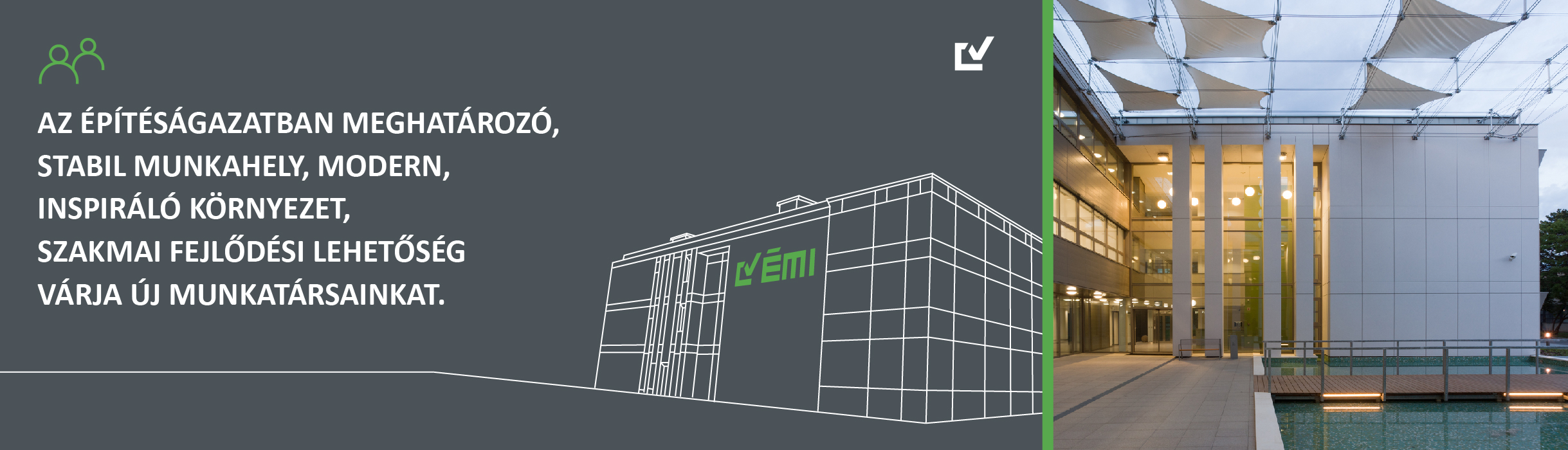 Az ÉMI-nél stabil hátteret biztosítunk ahhoz, hogy munkavállalóink hozzájáruljanak egy meghatározó iparág fejlődéséhez. Nemzetközi kapcsolatrendszerünk, tevékenységünk méginkább segít minket abban, hogy továbbra is az építési termékek megfelelőségértékelésének, laboratóriumi vizsgálatainak, valamint az építőipari kutatások, fejlesztések élvonalában maradjunk. Munkatársainkat támogatjuk a szakmai fejlődésben, továbbá az alap cafetéria elemeken felüli olyan juttatásokkal is hozzájárulunk az ideális és egészségtudatos munkahely megteremtéséhez, mint például üdülési és sportolási lehetőség.
